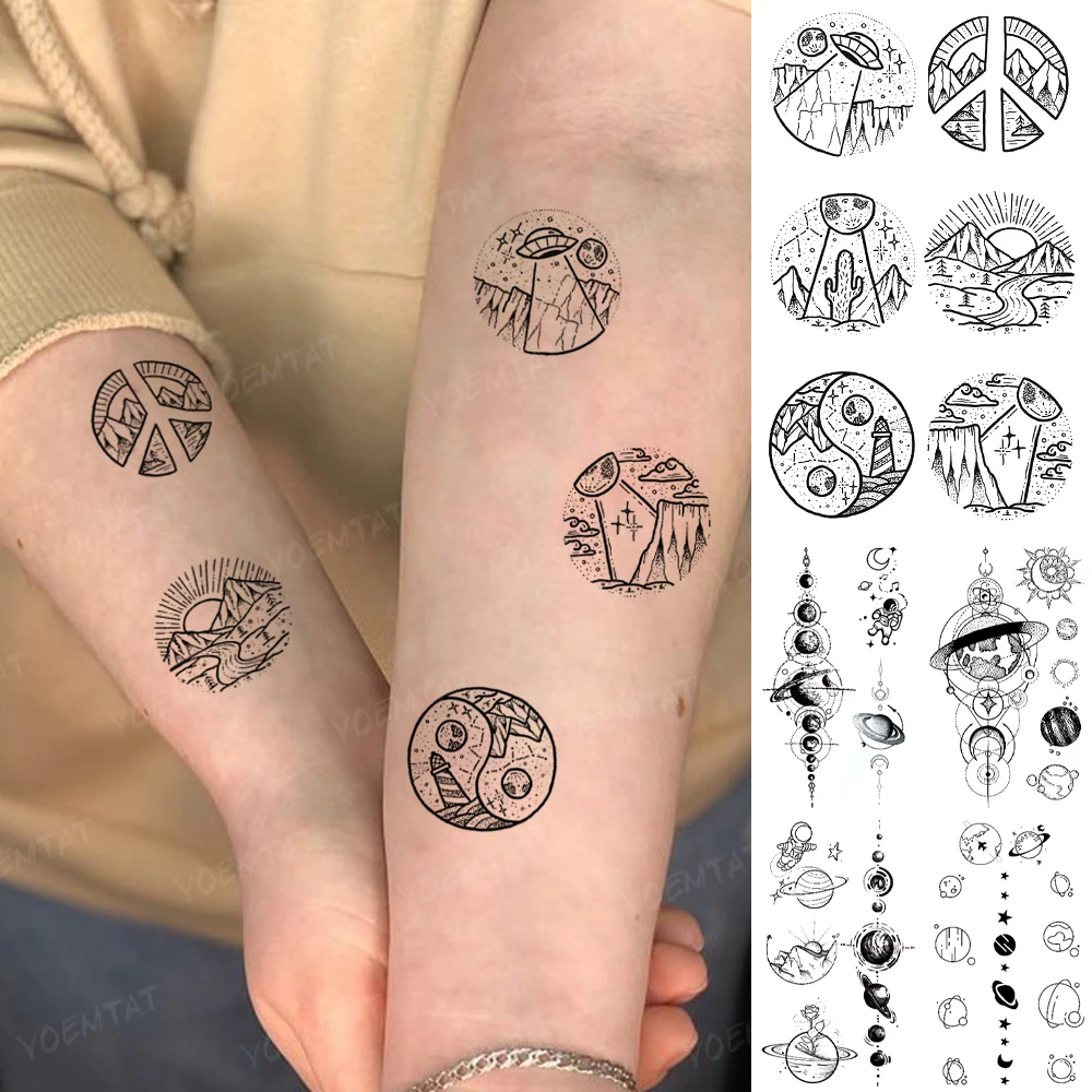 Water Transfer Temporary Tattoo Sticker Spaceship Gossip Mountains Flash Tatoo Circular Pattern Wrist Body Art Fake Tatto Woman Temporary Tattoos Aliexpress